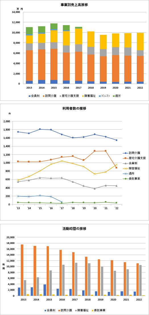 | 2000年4月 | NPO法人の介護保険指定業者介護保険対応 訪問介護サービス開始 | 介護保険指定事業所番号:1374100459 |